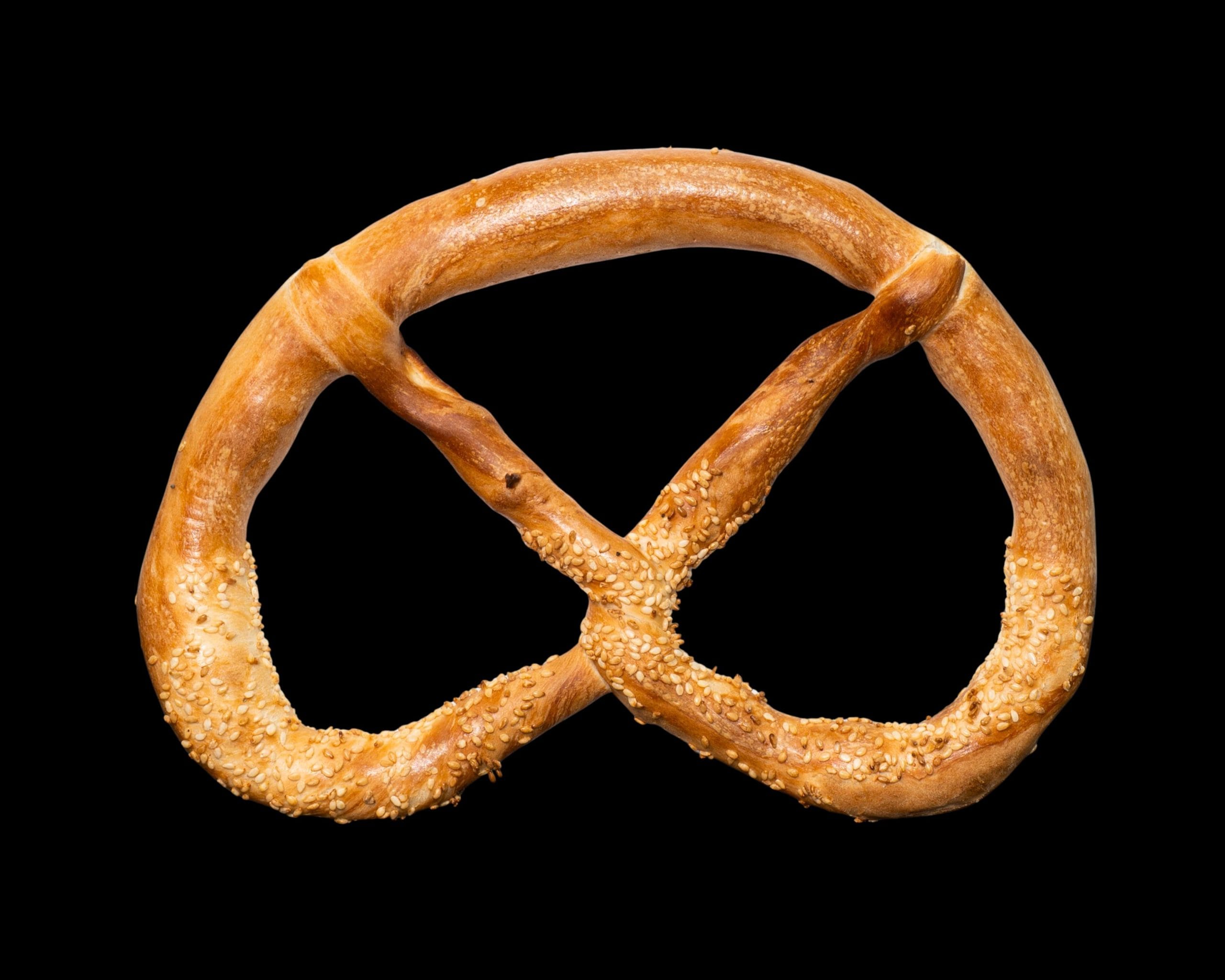 Covrig cu susan, proaspăt copt, cu crustă crocantă și miez moale.