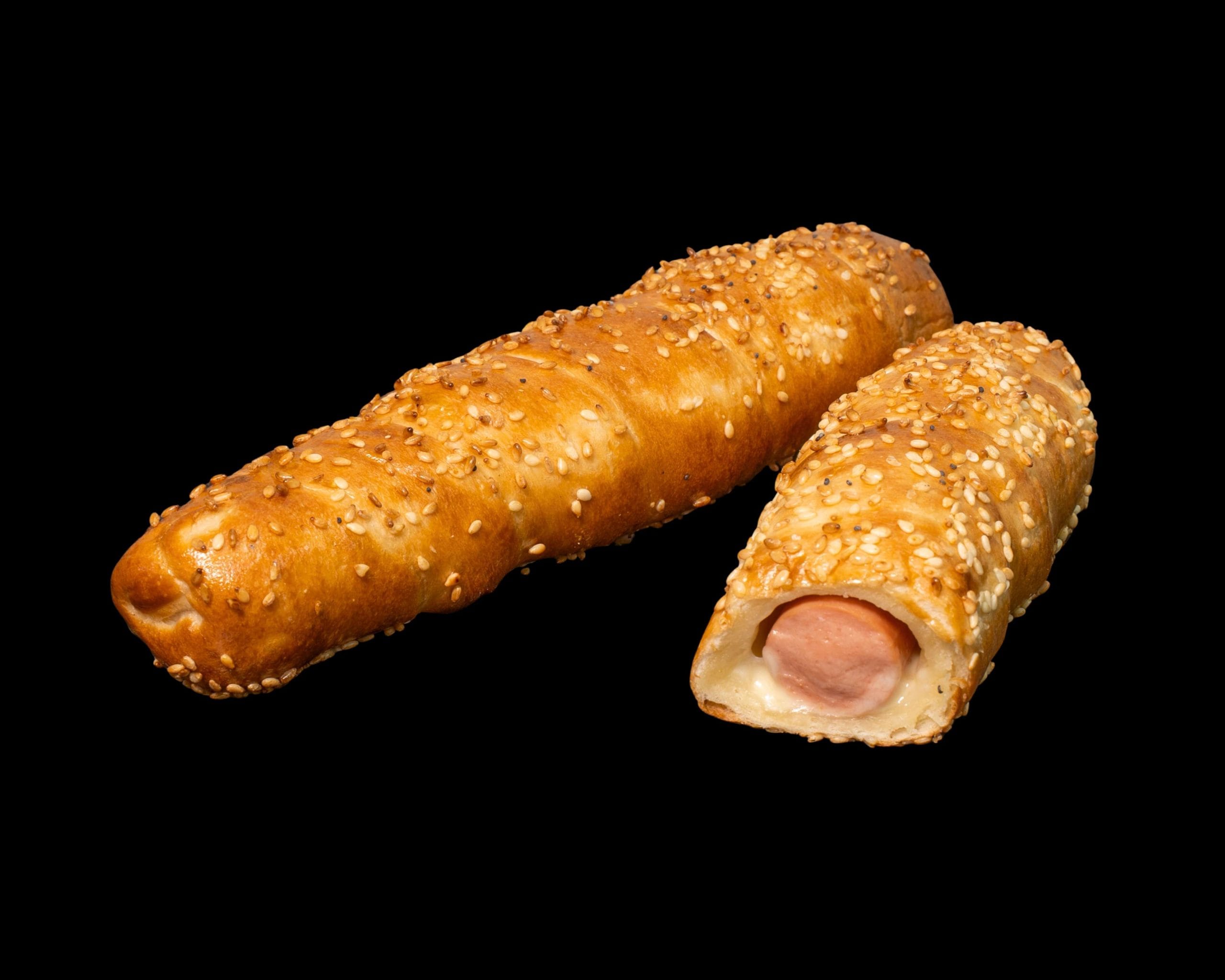 Rulou fraged umplut cu crenvurști de pui și cașcaval.
